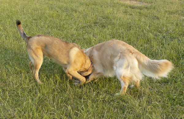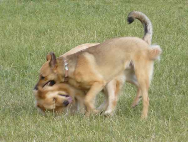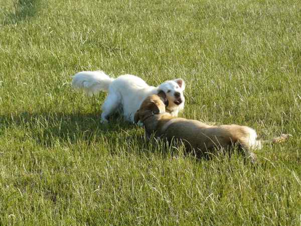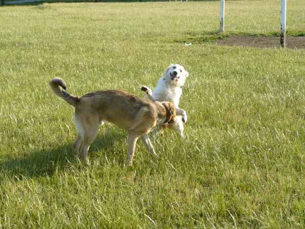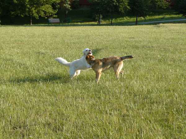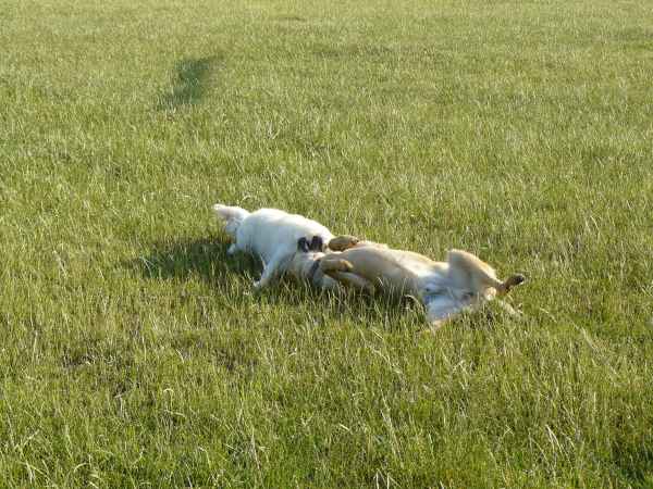 Niedziela rozpoczęła się świetna pogoda i równie świetnym rannym spacerem już po 6-tej. Najpierw Ruter pobawił się z Tiną, później poszalał z Bafi.