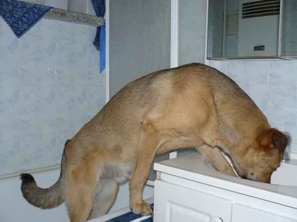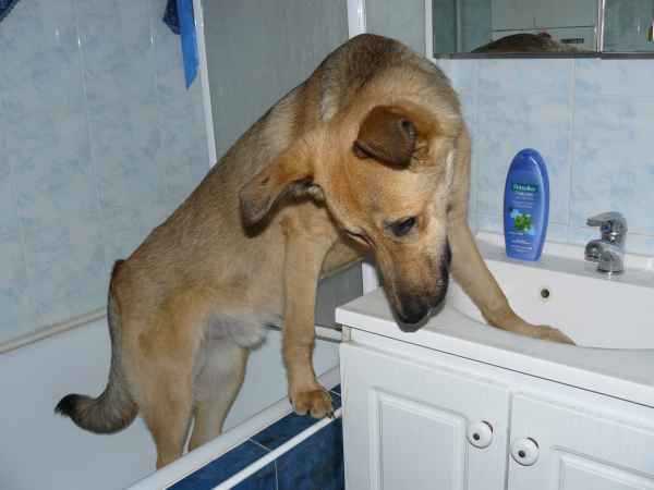Tuż przed wieczornym spacerem Ruter jak zwykle usiłował się upewnić że o nim pamiętam. Tym razem postanowił sprawdzić moja uwagę w łazience.