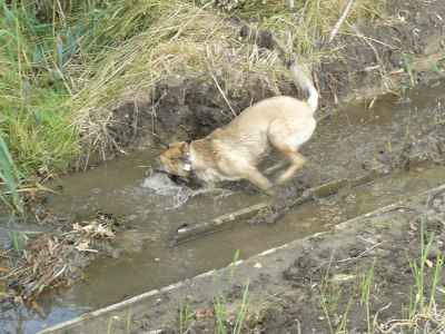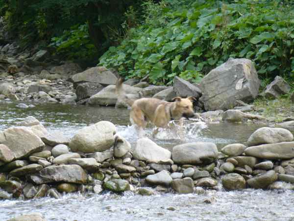 Szaleństwa w wodzie, czyli Ruter dorwał się wreszcie do potoku.