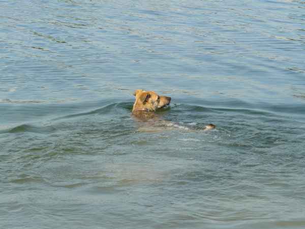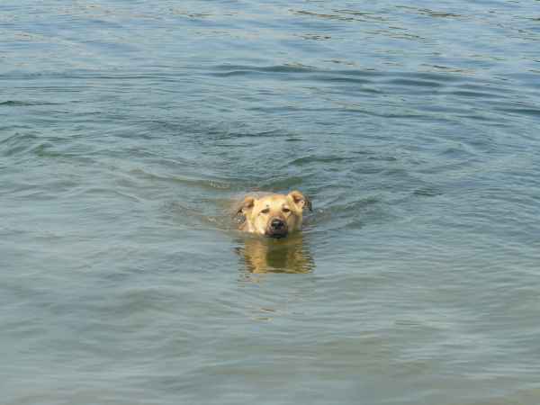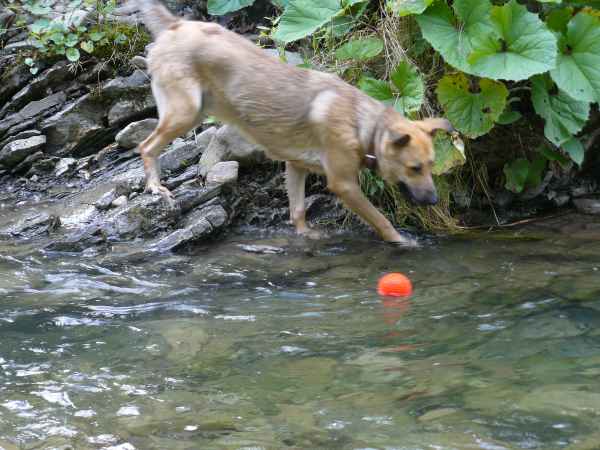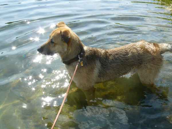 I natychmiast zawraca na przywołanie.W obliczu wakacyjnej wyprawy nad rzekę można się nieco obawiać upodobania Rutera do wody, ale wydaje się że jest bardzo spokojny i posłuszny, nawet we wodzie.