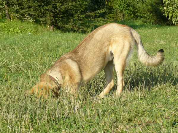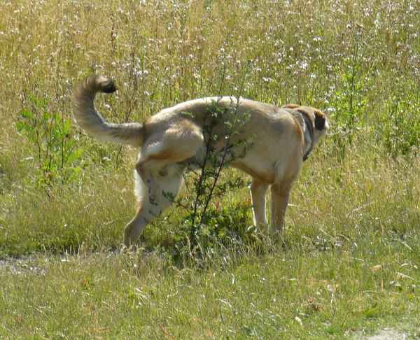 A na popołudniowym spacerze po raz kolejny dał dowód, ze już dojrzewa. Od trzech lub nawet czterech tygodni Ruter oddaje mocz nie tak jak robił to uprzednio, czyli po prostu jednorazowo, lecz po trochu i z zadartą nogą. Nawet, gdy mu się bardzo chce siusiać nie oddaje na raz całego moczu, lecz "zachowuje" sobie rezerwę na obsikanie każdego następnego spotkanego na ścieżce krzaczka, słupka, murek, i tym podobne inne psie tablice ogłoszeniowe.