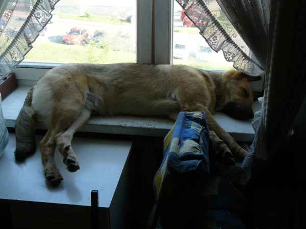 Wieczorne wylegiwanie się na parapecie z kontrolnym podglądem na "psi wybieg",