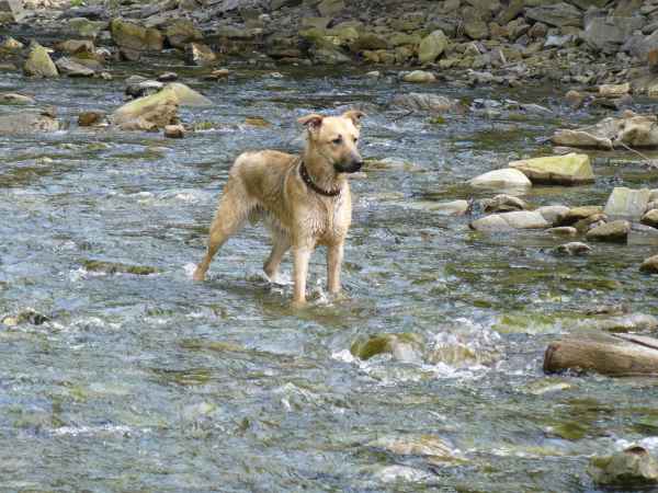 Ruter wprawił mnie w zdumienie kładąc się w potoku i to w dodatki w jego poprzek.