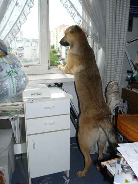 i ochoty do zabawy...Poprzedniego wieczora zauważyłem niewielką ranę na przedniej łapie która najwyraźniej sprawiała kłopot Ruterowi więc przed południem Ruter zaliczył wizytę u osiedlowego weterynarza. Dziwna sprawa, bo po raz pierwszy zdarzyło się, żeby Ruter był tak przestraszony w gabinecie. W poczekalni jeszcze nie było żadnego kłopotu, ale jak tylko otworzyły się drzwi od gabinetu i Ruter zobaczył weterynarza natychmiast zaczął się gwałtownie wyrywać. Z dużym trudem zmusiłem go do wejścia do gabinetu. W środku było jeszcze gorzej. Przez cały czas wizyty Ruter był bardzo niespokojny i musiałem użyć całej siły by utrzymać go w gabinecie.