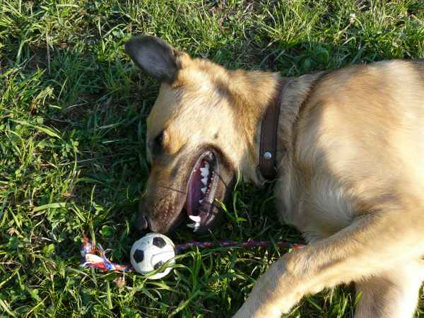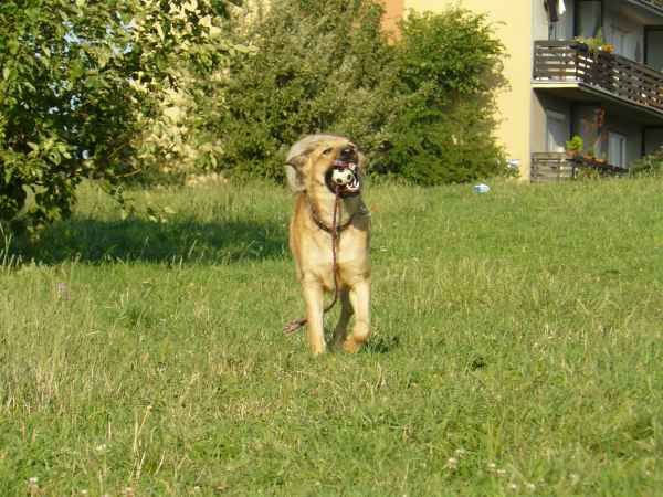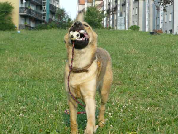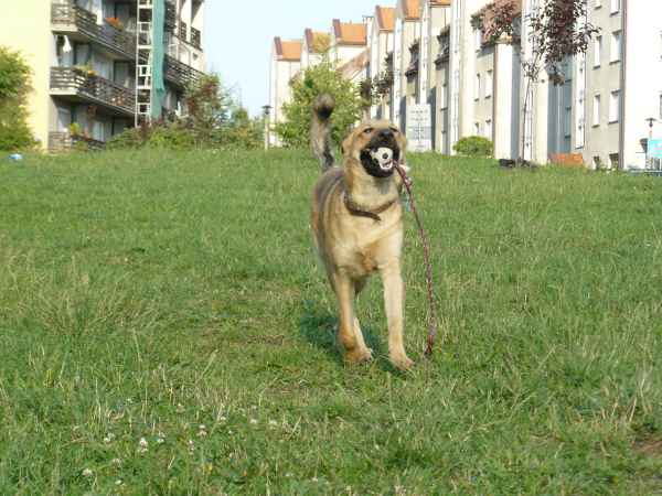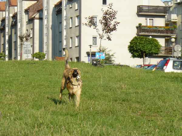 Na koniec spaceru znakomita zabawa znalezioną piłką Hektora.