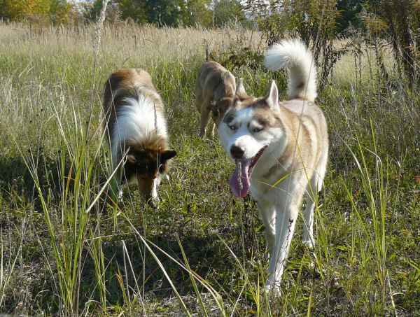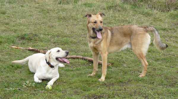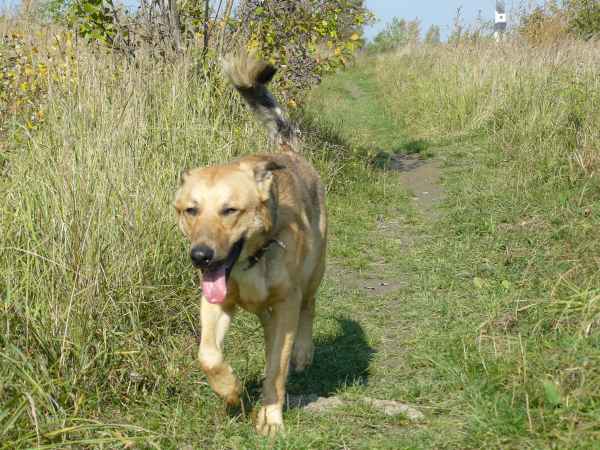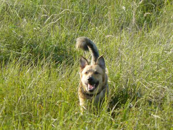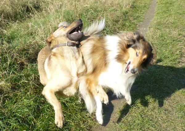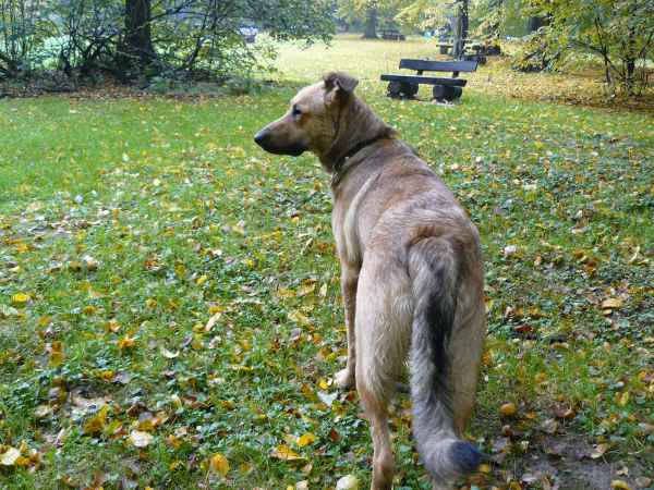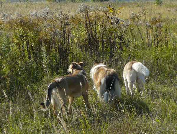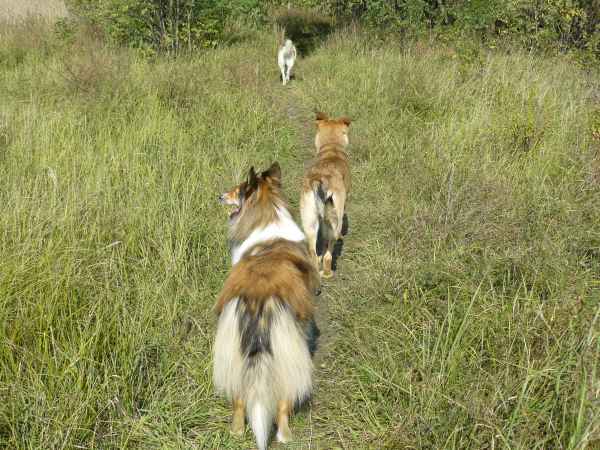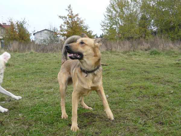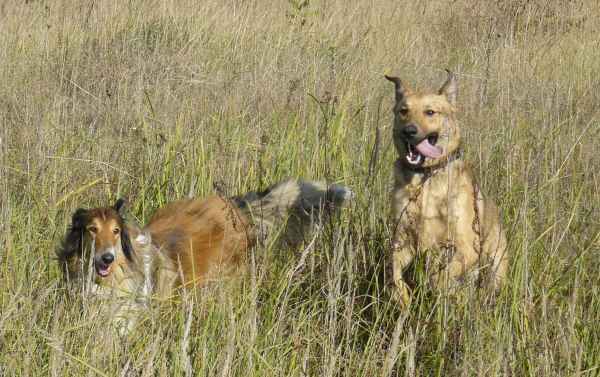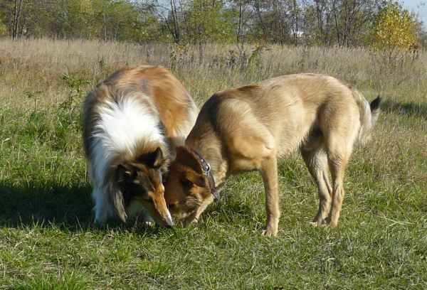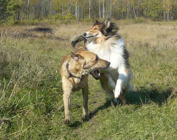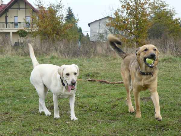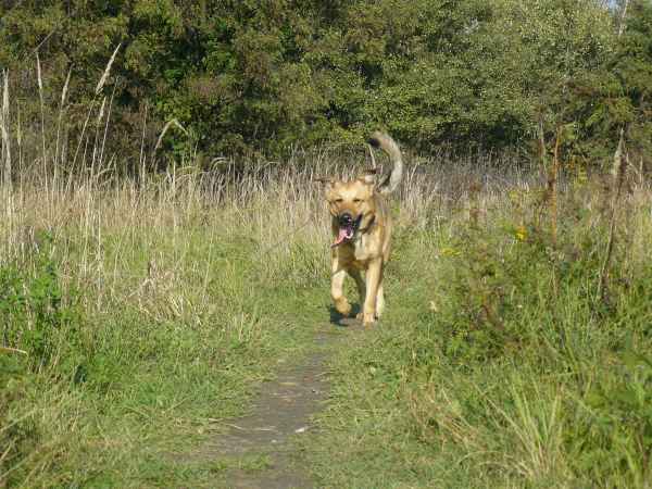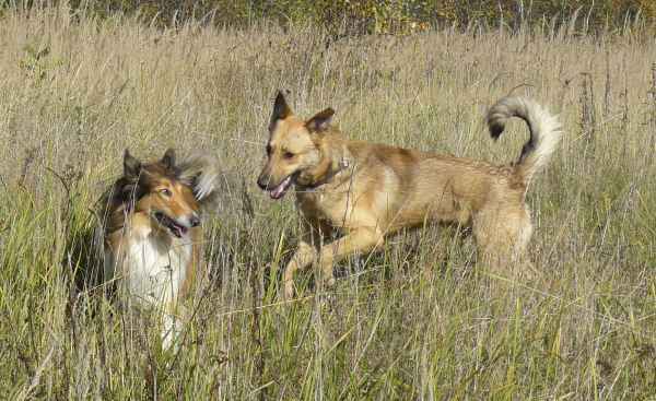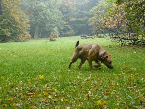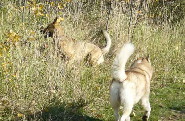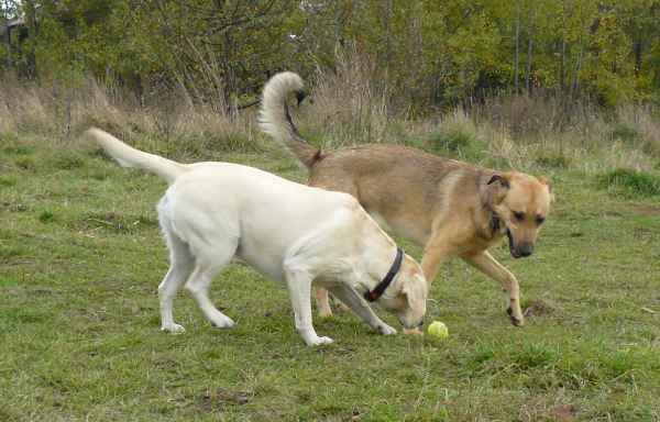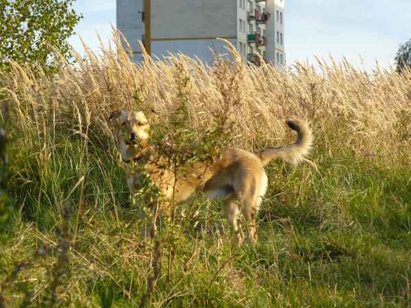 Młodzież szaleje, Jaskier pilnuje porządku.Zupełnie niespodziewanie Ruter świetnie bawił się z Alfą. Zabawa była bardzo intensywna. Mniej więcej dwa razy na każde okrążenie Rutera ogarniało szaleństwo. Nagle zaczynał pędzić przed siebie na przełaj po chaszczach, krzakach, trawach. Zawracał i znowu galop przed siebie. Momentami gwałtowne zwroty raz w lewo raz w prawo. Raz po raz zaczepiał też Alfę i prowokował ją do wyścigów, co często mu się udawało. Po kilku minutach odpoczynek, by za jakiś czas rozpocząć szaleństwa od początku. Dzięki temu na koniec spaceru Ruter był wyczerpany jak po długiej górskiej wycieczce.