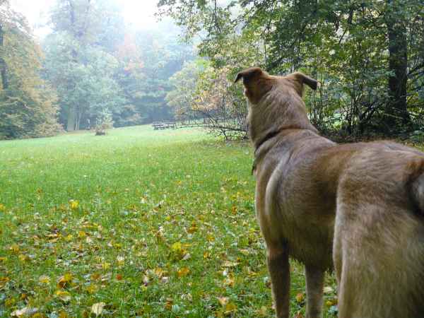 Z niecierpliwością wyczekiwaliśmy takiego dnia jak ta niedziela. Zapowiedzi pogody były bardzo optymistyczne, jednak dzień wstał bezdeszczowy, lecz pochmurny i zamglony. Ruter od samego początku wyczuł, że szykuje się jakaś wycieczka. Był tak podekscytowany, że nie chciał nawet nic zjeść. Chodził za mną po całym mieszkaniu krok w krok pilnując abym przypadkiem nie pozostawił go w domu. Gdy w końcu założyłem mu obrożę, był wniebowzięty.