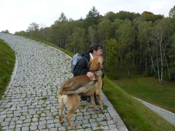 Odpoczywamy pod Kopcem Niepodległości.Pod Kopcem Niepodległości Ruter zjadł swój posiłek. Niemal z każdą chwilą robiło się coraz cieplej, choć słońca dalej nie było widać zza mgły. Anka musiała zostać pod kopcem, dalej więc Ruszyliśmy sami.
