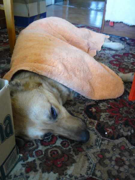 Jak bardzo pies musi być osłabiony, że nie protestuje przed przykryciem ręcznikiem ?Piątek (10 X)