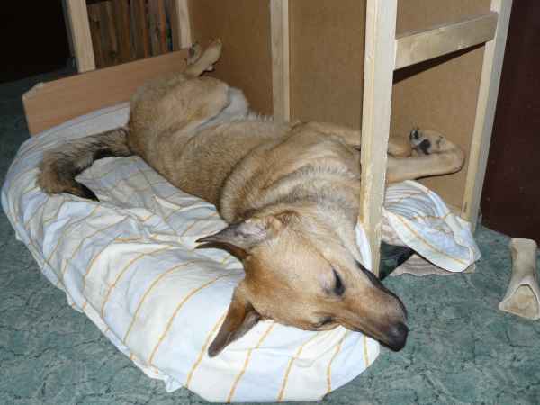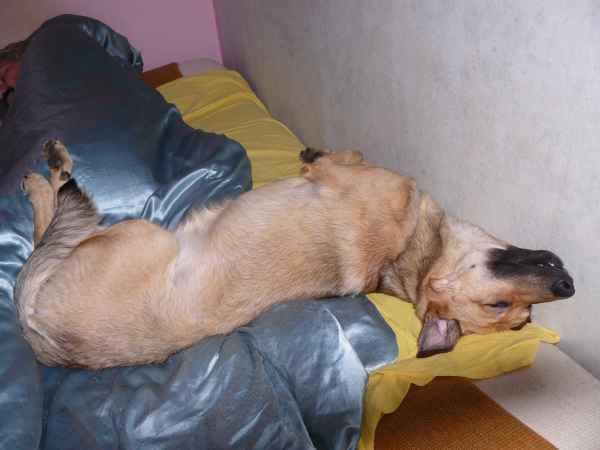 Ruter śpiący z zadartą głową jeszcze przed porannym spacerem.Sobota (18 X)
