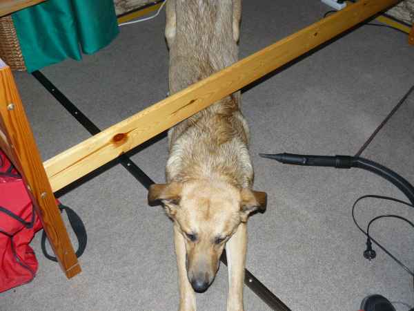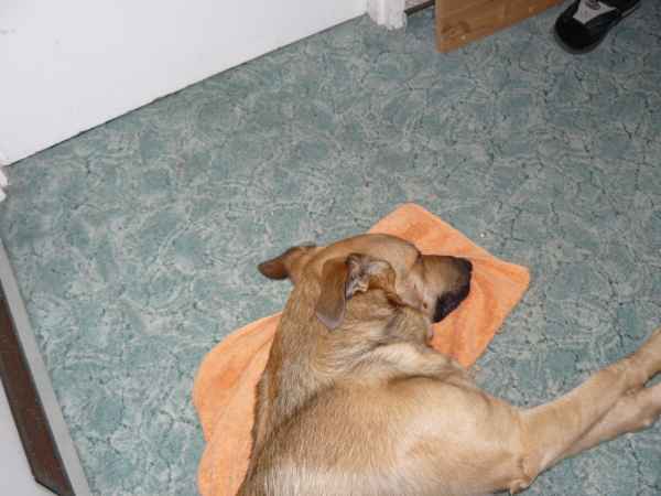 Skutek rozpieszczenia. Ruter sam wywlókł z pokoju swój ręcznik i w korytarzu ułożył się na nim doi snu.Sobota (25 X)