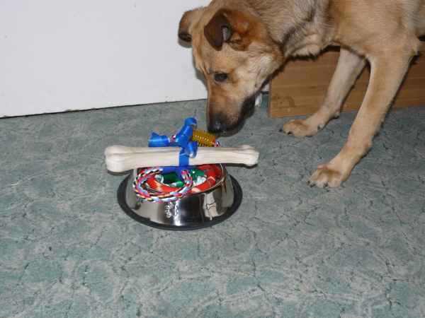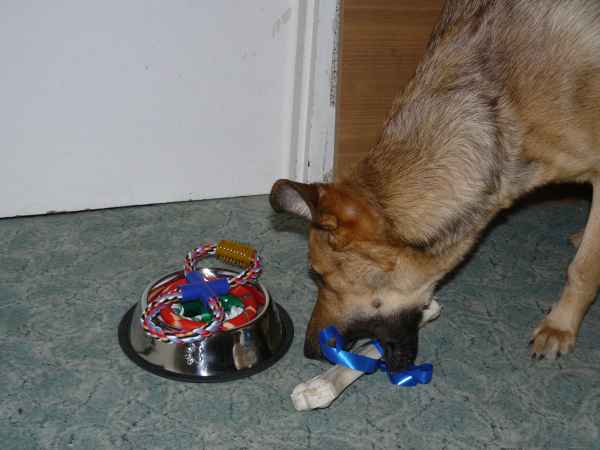 Ruter dostał pełna miskę smakołyków i zabawek.