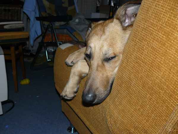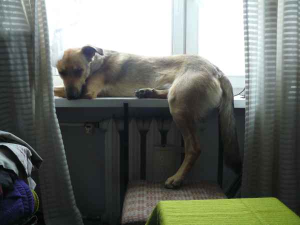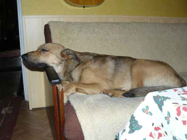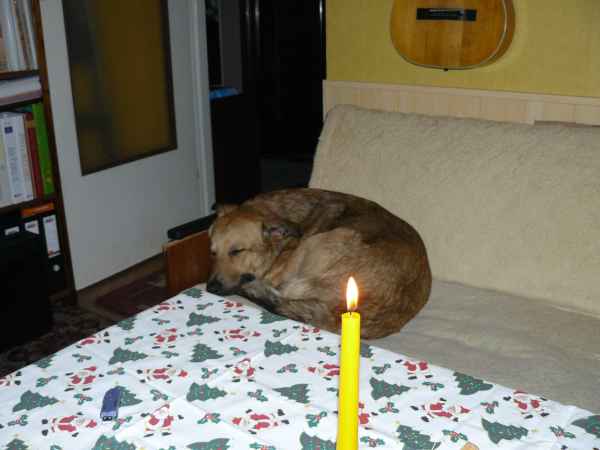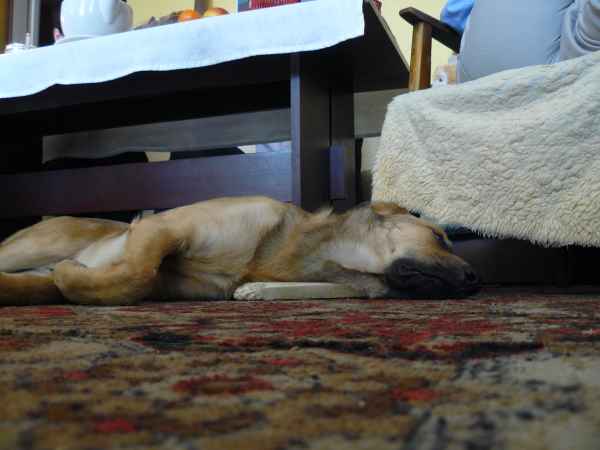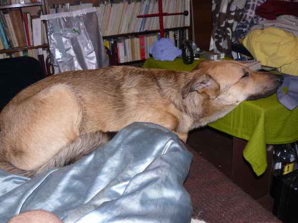 Przedziwna pozycja Rutera w oczekiwaniu na moje wygrzebanie się z łóżka.Niedziela (21 XII)