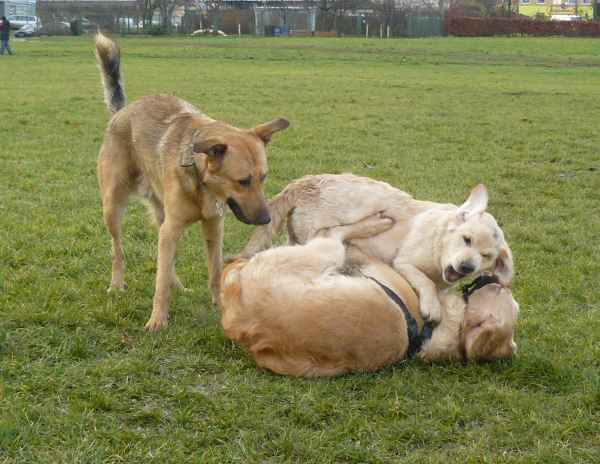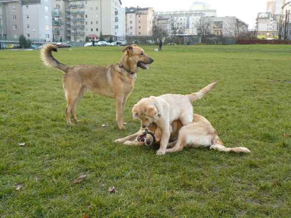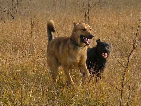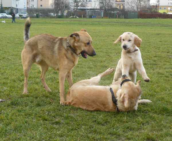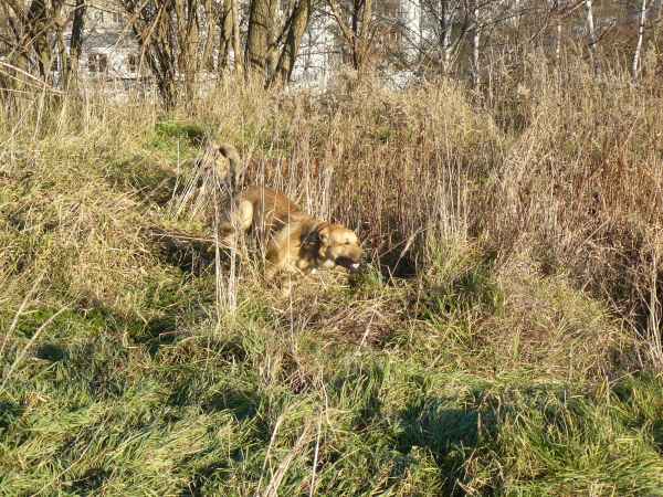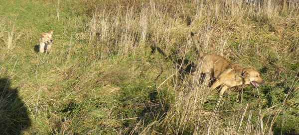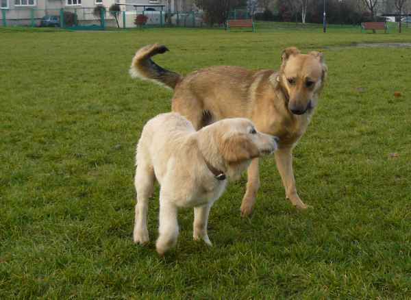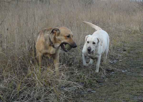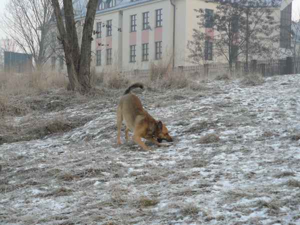 Sobota okazała się znowu słoneczna, więc nie można było nie przegonic Rutera. Jak zwykle poszliśmy na Solvay. Nie trzeba było długo czekać, by spotkać inne pieski, więc Ruter miał z kim się gonić.