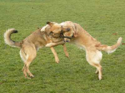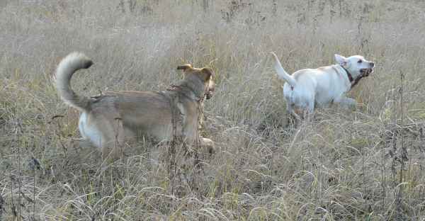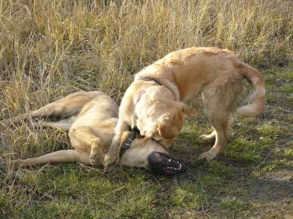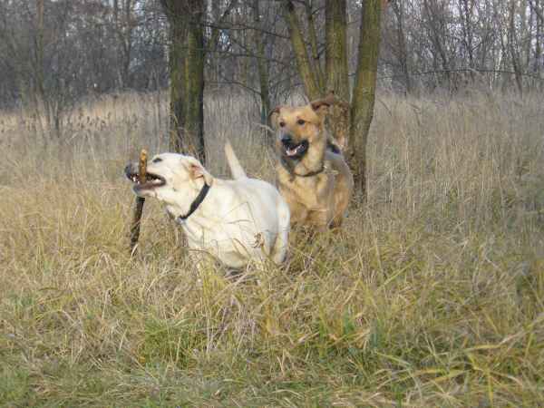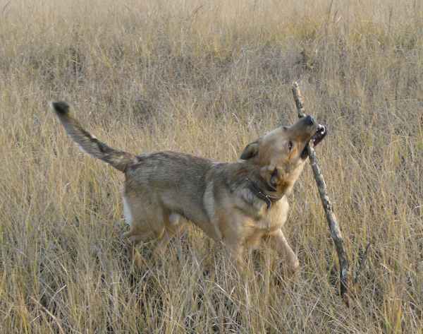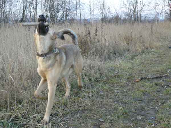 Nareszcie jakaś zabawa. Na razie trzeba odebrać patyk Daisy.
