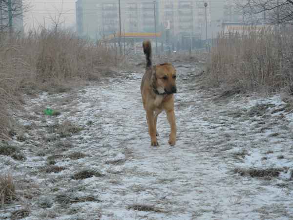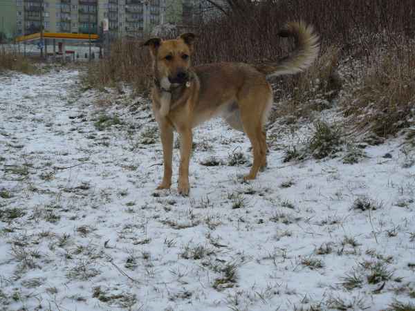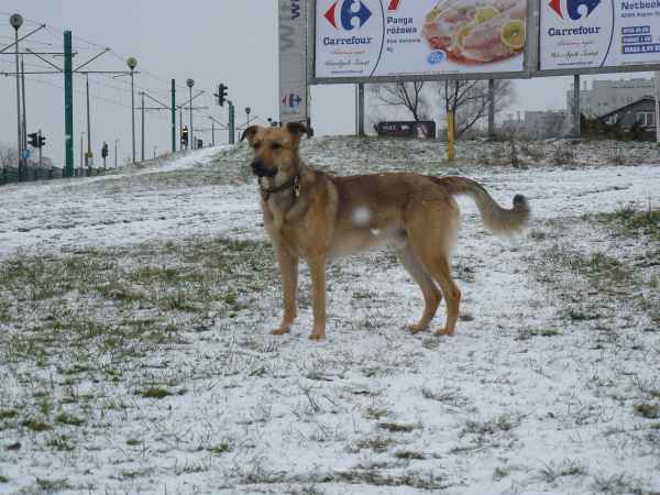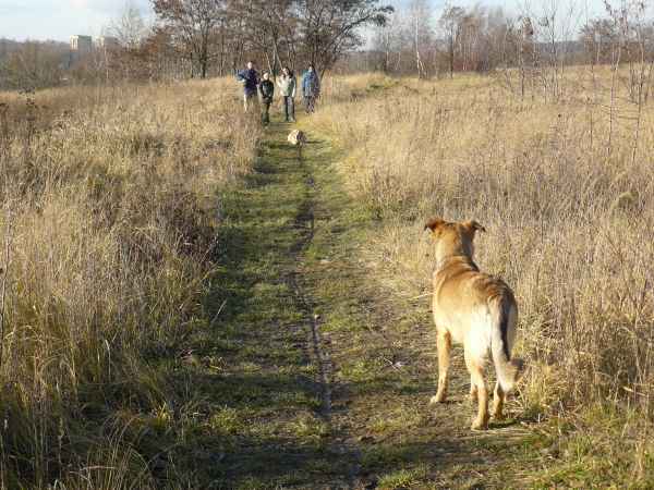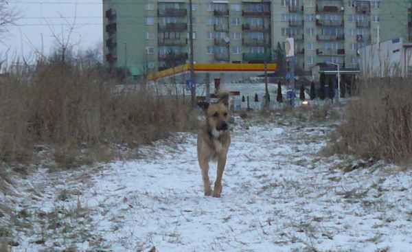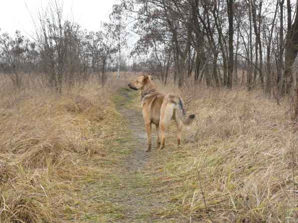 Astronomiczną zimę powitaliśmy z Ruterem na Solvayu. Kilka minut po 13-tej rozpoczęlismy spacer i skończyliśmy go kilka minut po 15.tej. Można więc powiedzieć, że pierwsze dwie godziny zimy spędziliśmy w całości na spacerze. Pogoda była pochmurna ale nie deszczowa. Momentami zdarzały się podmuchy chłodnego wiatru. Ale ogólnie było na tyle ciepło, że nawet pod koniec spaceru nieco się zgrzałem. Pełne dwa okrążenia odbyliśmy samotnie. Dopiero na sam koniec napotkaliśmy Sarę, więc razem z nią zrobiliśmy jeszcze jedno kółeczko. Niestety, z powodu chmur zdjęcia mogłem zrobić tylko statyczne, ale Ruter z Sarą momentami sporo sobie biegały.