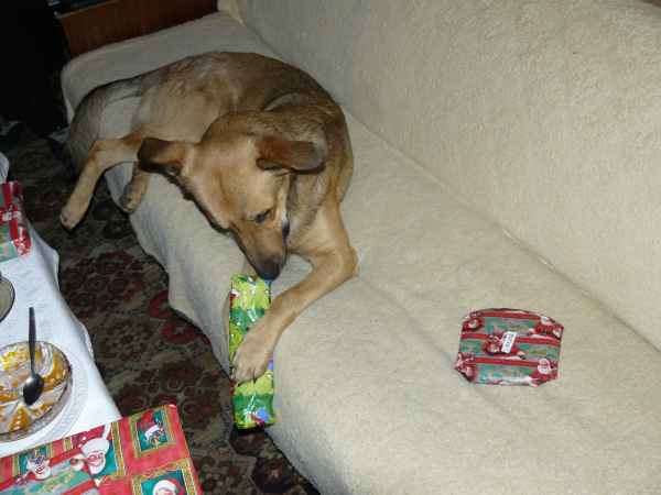 Samodzielne rozpakowywanie prezentów. Z tym Ruter poradził sobie doskonale.