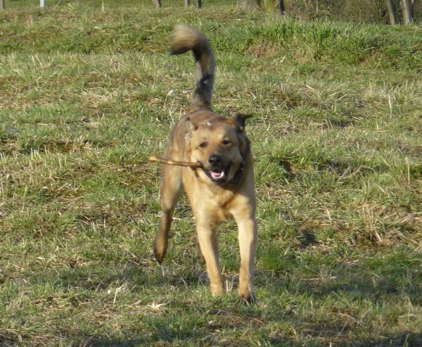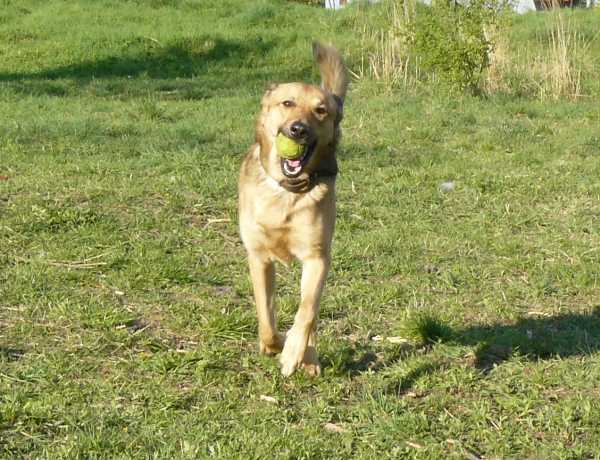 Od czasu czerwonej ażurowanej piłeczki, na punkcie której oszalał zupełnie, zaczął też bawić się innymi piłeczkami. Jak nigdy dotąd wyżywa się w aportowaniu. Aż do zamęczenia rzucającego... :)