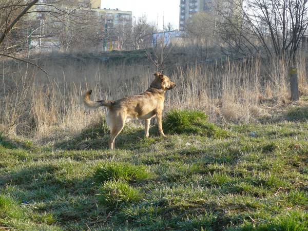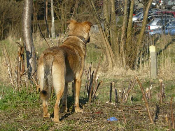 Ruter wypatruje koleżków.W południe zdecydowaliśmy się na wycieczkę w Dolinki. Najlepsza będzie ta sama trasa co tydzień temu, ale w przeciwnym kierunku.