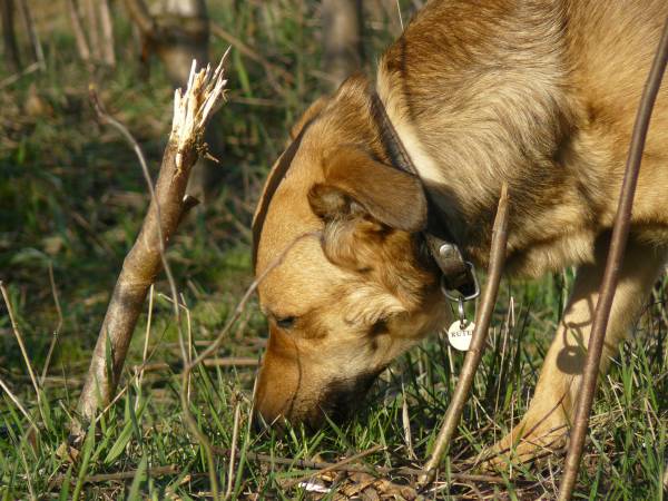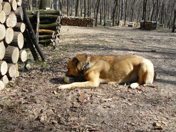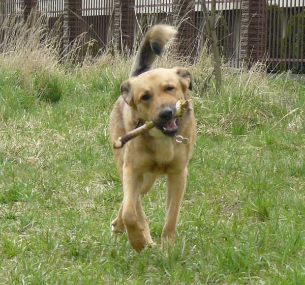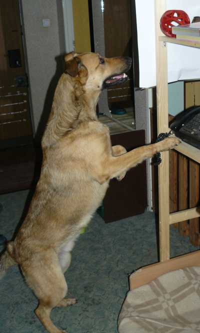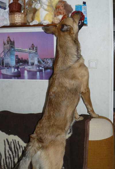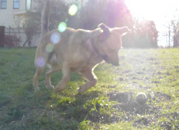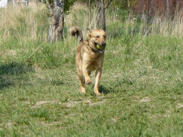 Niestety, zabawa Rutera głównie polega na namiętnym gryzieniu tej piłki. Nie chciałem by jej zbyt szybko zniszczył a mógł sie nią bawić głównie na spacerach. Postanowiłem więc w domu ją ukryć przed Ruterem. Jednak okazało się, że nie da się Ruterowi tej piłeczki odebrać. Bronił jej tak, jak żadnej do tej pory innej zabawki. Węch ma absolutny, więc gdziekolwiek bym jej nie ukrył, natychmiast ją znajdował. Nawet, gdy położyłem ją na wysokiej półce, znalazł sposób i na to.
