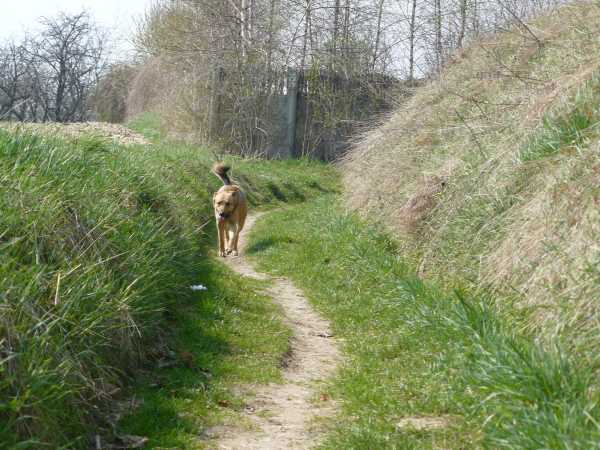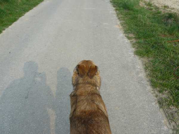 Wracamy do domu.W sumie ten jeden z pierwszych (tydzień temu spacerowaliśmy 6 km pod Tarnowem, a wcześniej 5 km po stadionie Unii) wiosenny spacer miał prawie 8 km w 2,5 godziny, a pomimo wróciliśmy obaj bardzo zmęczeni. Ja chyba nawet bardziej od Rutera.