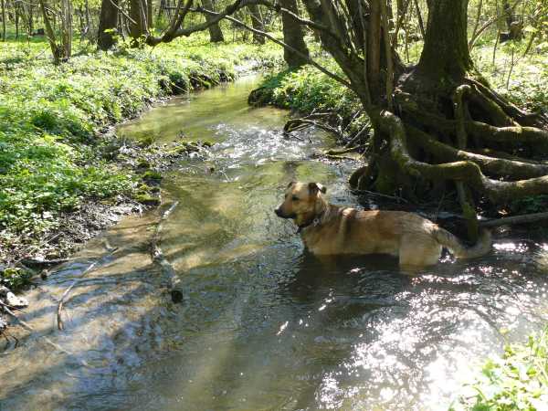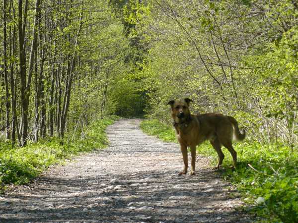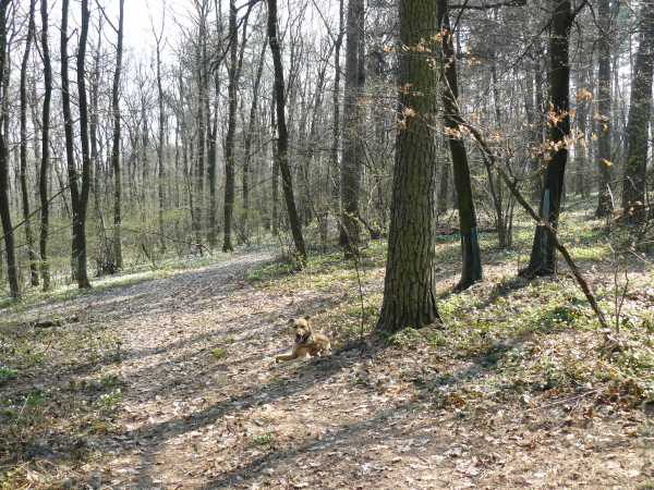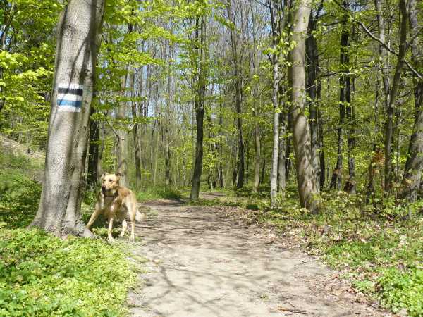 Pogoda okazała się tak wspaniała, że wyczuł to nawet Ruter. Już w godzinę po powrocie ze spaceru porannego zaczął sygnalizować ochotę na wyjście. Leżenie na parapecie w pełnym słońcu uświadomiło mu, że czas już najwyższy na coś lepszego nić spacer po osiedlu. Tak więc w samo południe zdecydowałem się zabrać Rutera na wycieczkę. Wybór padł na Las Tyniecki (zobacz trasę).