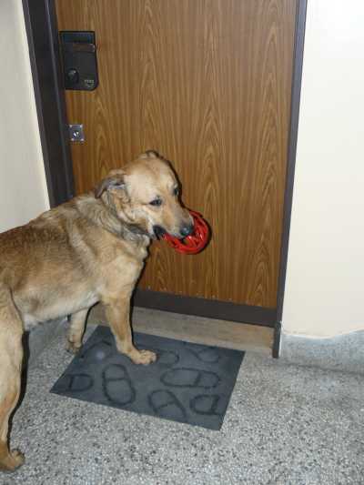 W dniu następnym szaleństwo Rutera do piłki ciąg dalszy. Po wieczornym spacerze Ruter nie miał dość zabawy. Po dłuższej zabawie w korytarzu widać jednak było, że nie mamy szans zmęczyć Rutera. Postanowiliśmy więc sprawdzić, do czego Ruter się posunie żeby zdobyć tę piłeczkę. Musieliśmy jednak przerwać zabawę, bo okazało się, że w celu zdobycia piłeczki Ruter jest wstanie przełamać wszelkie swoje bariery psychiczne.