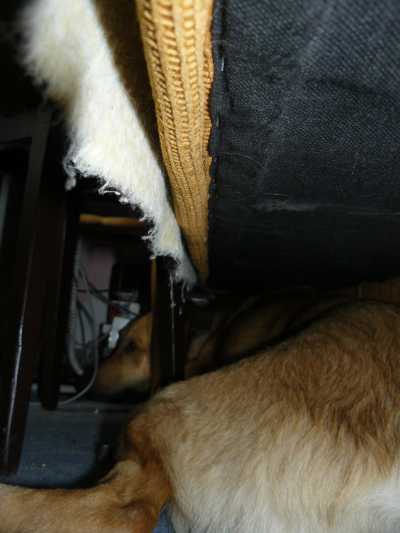 Ruter znów dał pokaz swoim przyzwyczajeniom do dziecinnych upodobań. Wykorzystał fakt że zostałem dłużej w domu i zaraz po porannym spacerze i śniadaniu wczołgał się pod wersalkę, dokładnie tam, gdzie w dzieciństwie spędzał długie godziny. Tyle tylko, że teraz już się tam po prostu nie mieści.