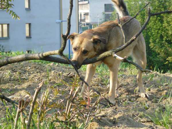 Na porannym spacerze zmagania Rutera z gałęzią.