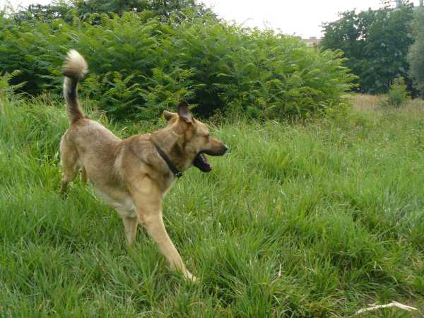 Znów rozpoczynamy spacery po osiedlu. Ruter jednak bardzo przyzwyczaił się do swobody w Alpach i teraz wyciąga mnie na spacer niemal co chwilę. Jednak do swobodnego pobiegania pozostaje nam tylko jedna łąka.