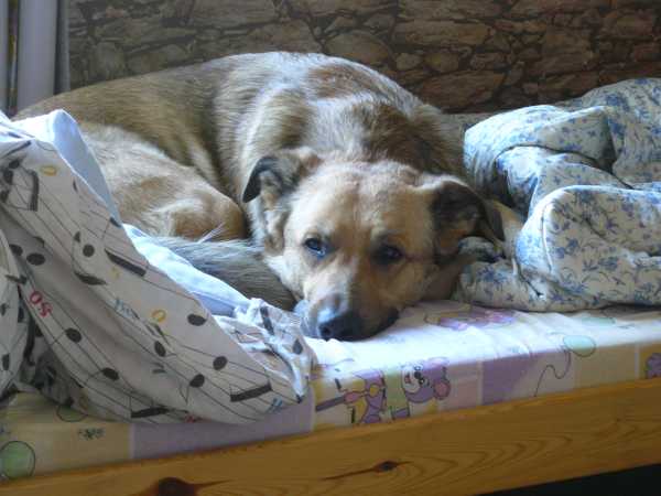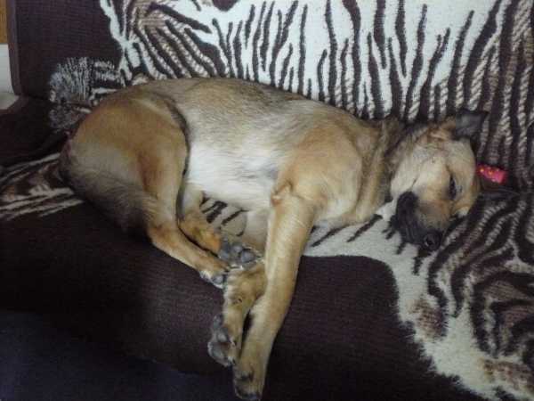 Klasyczna poza Rutera podczas odpoczynku na mojej wersalce.