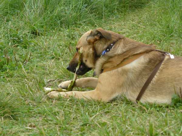Wspólne obgryzanie patyków z Sunny na porannym spacerze.Niedziela (23 VIII)