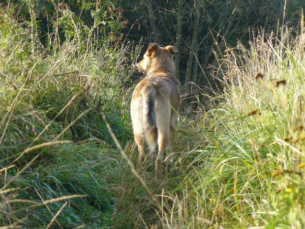 Na porannym spacerze Ruter smętnie snuje się w poszukiwaniu towarzysza zabaw.