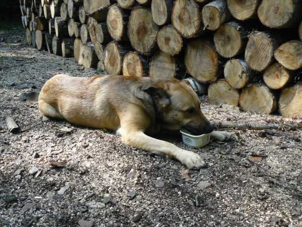 Tuż po porannym spacerze Ruter towarzyszył nam podczas śniadania domagając się czegoś dla siebie. Jednak tym razem jedliśmy zupę mleczną, więc o cóż może mu chodzić ? Anka postanowiła zaryzykować i dać mu mleko. Okazało się, że Ruter pije mleko z wielkim smakiem. Wylizał miskę do dna.