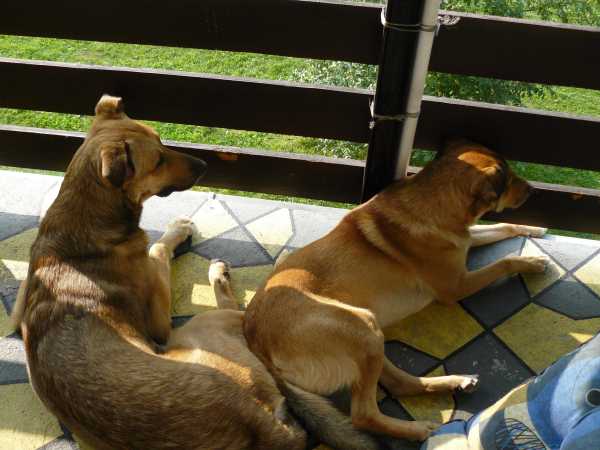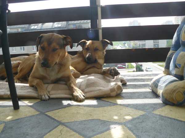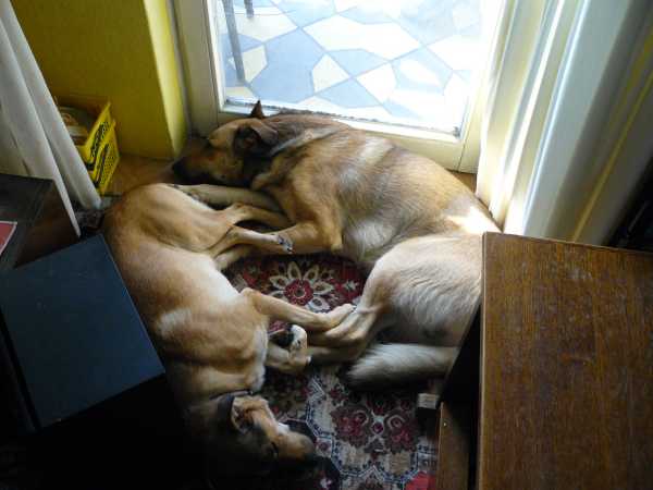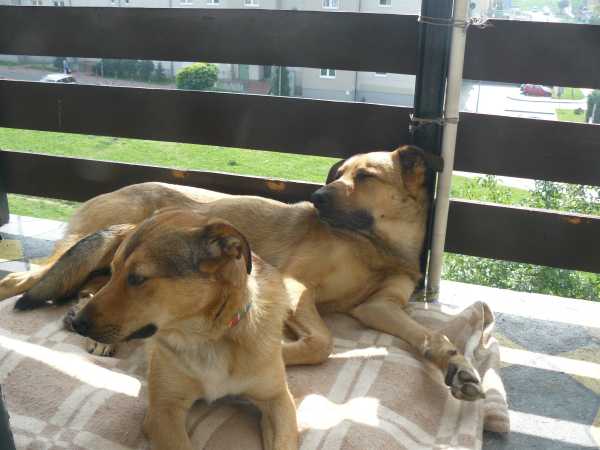 Spanie pod drzwiami balkonowymi. Psiaki wyglądają na idealnie zgodneWtorek (22 IX)
