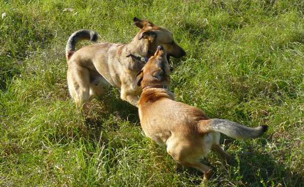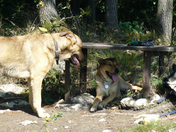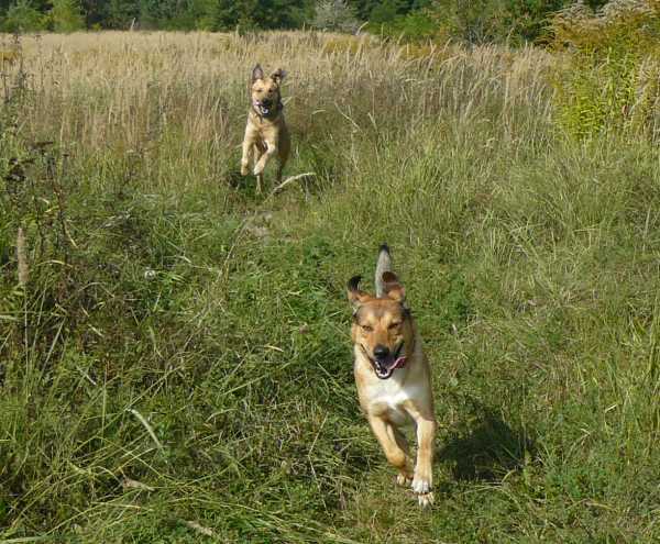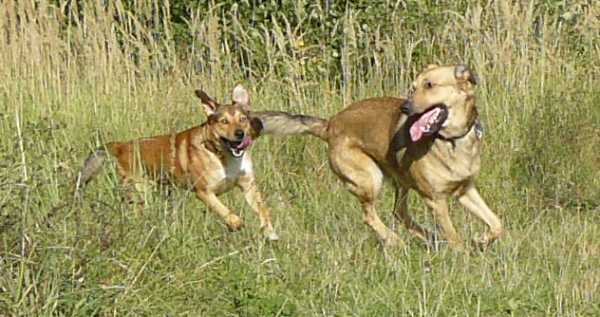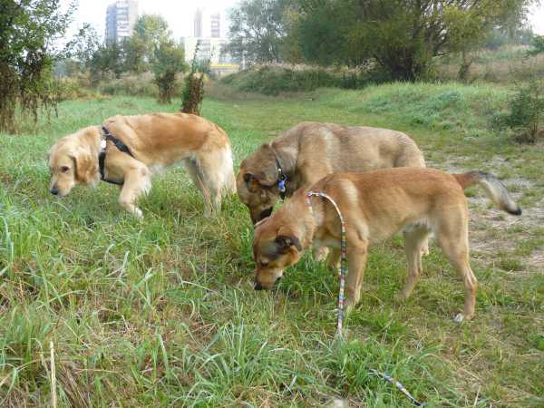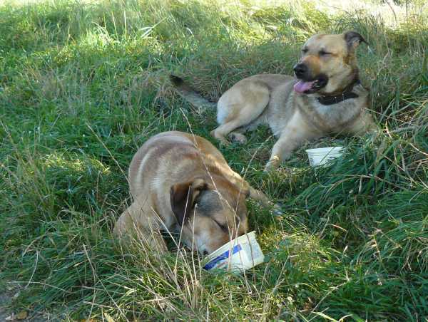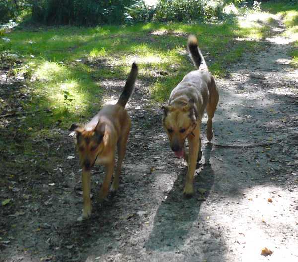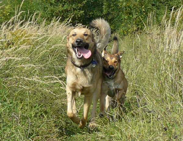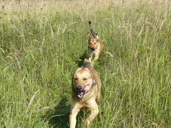Widać, że psiaki doskonale się razem bawią. Dzięki wspólnym zabawom oba nawet z niezbyt długich spacerów wracają wybiegani. Pixel coraz bardziej się z nami wiąże. Nie ucieka, nie odbiega zbyt daleko. Wygląda na to że pilnuje się Rutera lub mnie. Czasami tylko staje się nieobliczalny, gdy go coś z daleka zainteresuje. Wtedy zazwyczaj nie reaguje na przywołanie, ale jak dotychczas i tak po jakieś chwili wraca sam.