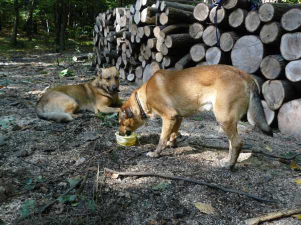 Mniej więcej w połowie trasy oba psy uspokoiły się. Najwyraźniej mają już dość.