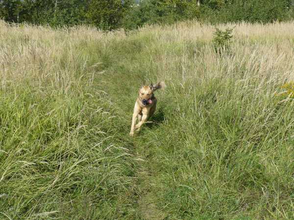 Czyżby podział miejsc już się ustalił ?Pixel jest znacznie bardziej ruchliwy od Rutera. Choć daje się prowadzić na smyczy bez oporów, to jednak widać, że mu to nie wystarcza. Energia aż w nim się gotuje. Dlatego na wieczornym spacerze postanowiłem, wbrew wcześniejszym zamiarom, pozwolić mu pobiegać bez smyczy. Ryzyko było bardzo duże, ponieważ Pixel jest u nas dopiero od czterech dni i na pewno jeszcze nie przyzwyczaił się zupełnie do nowej sytuacji. Pomimo to okazało się, że nie uciekał. Wprawdzie od razu pogalopował gdzieś daleko za czymś co go akurat wtedy zainteresowało, ale po kilku minutach wrócił i w zasadzie już nie oddalał się poza zasięg wzroku.