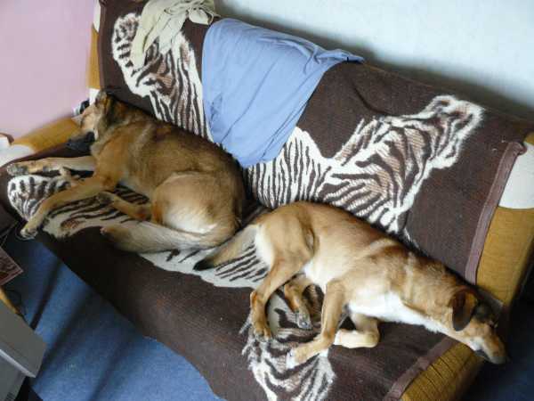Oto jak psiaki zgodnie wykorzystują wersalkę pod moja nieobecność.