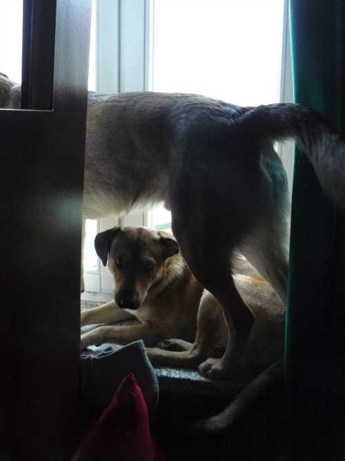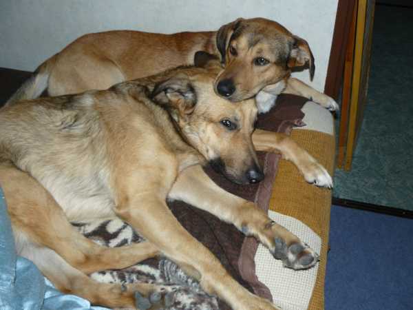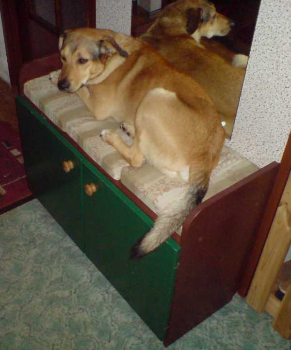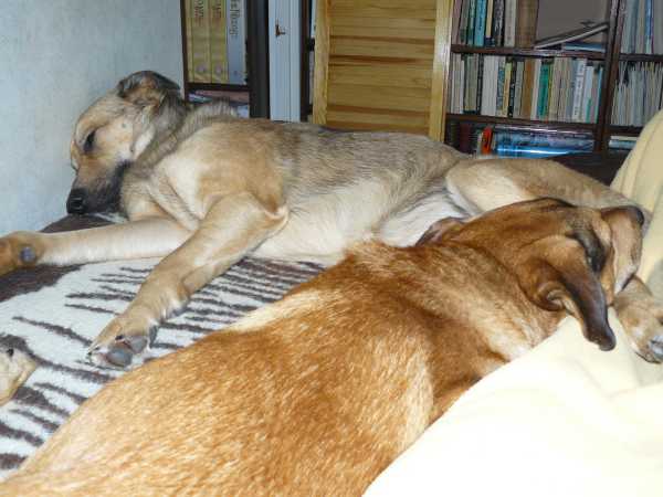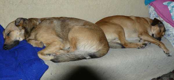 I znów cały dzień biedne psiaki muszą spędzić w domu. Nic dziwnego, że wylegują się na wersalce. Zabawne tylko jest to, jak potrafią się na niej umiścić równocześnie.