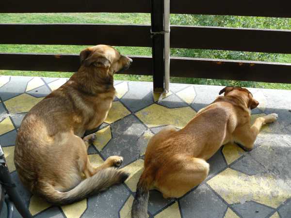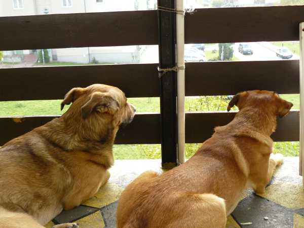 Psiaki wykorzystują rzadkie ostatnio chwile słoneczne na balkonie.Środa (28 X)