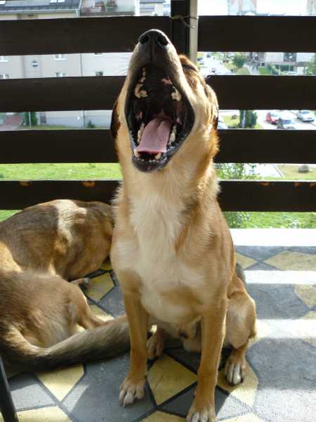 Po południu oba psiaki czekała uczta, bowiem z okazji drugich urodzin Ruter otrzymał od Sary (gorące podziękowania dla właścicielki) pełną torbę kości cielęcych. Anka przegotowała je i dziś po południu oba dostały solidną porcję. Dla bezpieczeństwa naszego mieszkania zjadały je na balkonie.