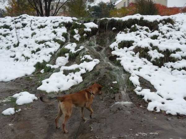 A dzisiaj z samego rano zupełnie niespodziewanie, choć właściwie zapowiedziany, spadł pierwszy śnieg. Ciekawy byłem jak zareaguje na niego Pixel, ale wyszło na to, że to Ruter był bardziej zachwycony. Właściwie to Pixel zachował się jakby go nawet nie zauważył.