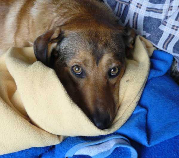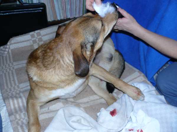 Psiaki stoją wyczekująco pod drzwiami gabinetu weterynarza.W podobne zdumienie wprowadził Ankę Pixel wczoraj. Również niezadowolony z opatrunku założonego rano długo się wiercił i lizał nogę poprzez bandaże. Aż wreszcie ściągnął z wieszaka kocyk, na którym Anka zwykle go kładzie do zmiany opatrunku, położył się na nim i zębami ściągnął z łapki opatrunek. Anka zastał ago w pokoju już wylizującego sobie łapkę. Najwyraźniej coś mu w tym opatrunku przeszkadzało. Po chwili bez oporu pozwolił sobie założyć opatrunek ponownie.