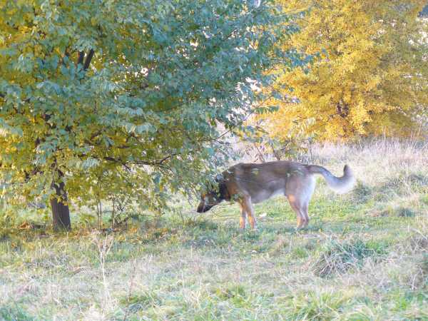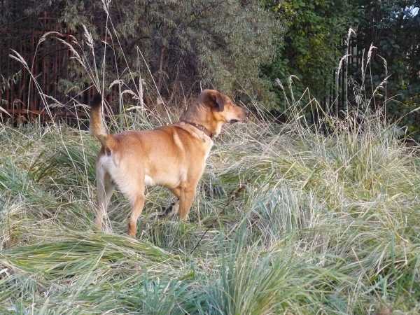 Ruter coraz swobodniej czuje się w domu i na spacerach. Pozwala sobie nawet na samodzielne wycieczki po osiedlu. Co prawda po kilku minutach wraca, ale niestety nie zawsze. Kilka dni temu musiałem chodzić po okolicy i go przywoływać. Wreszcie wyskoczył zza jednego z bloków w galopie gnając wprost na mnie. Udało się go przywołać. Widać, że psiak jest bardzo samodzielny i psychicznie niezależny. Choć w domu ciągle doprasza się o pieszczoty to jednak na spacerze zachowuje się jakby nikogo nie potrzebował. No cóż, trzeba będzie wziąć się za jego podstawowe szkolenie.