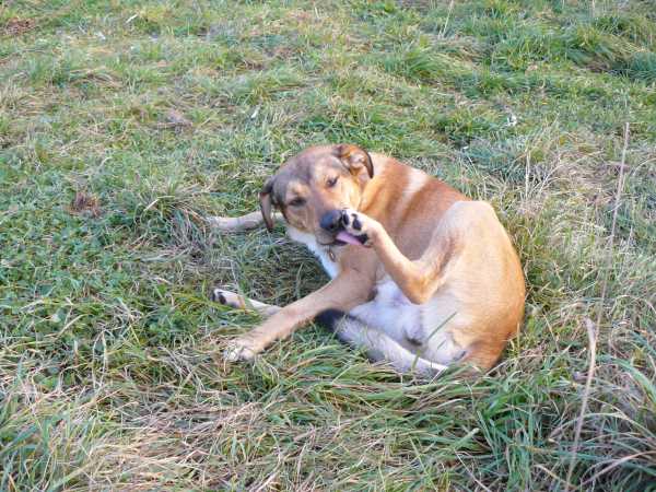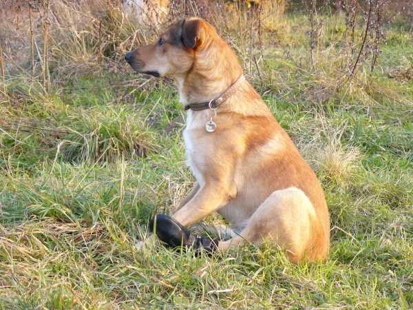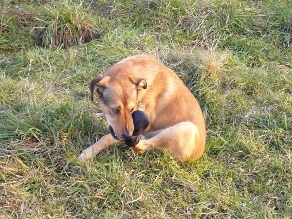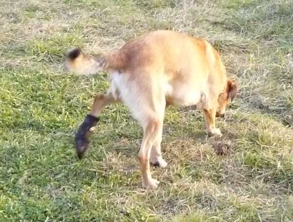W tym czasie Ruter wałęsał się smętnie po okolicy.Sytuacja stawało się coraz bardziej kłopotliwa. Pixel dalej usiłować przegryźć pantofelek. Zdecydowałem się więc na zdjęcie pantofelka ochronnego by chociaż w opatrunku pospacerował sobie po łące. Jednak razem z pantofelkiem zszedł z łapki cały opatrunek. Teraz dopiero zrozumiałem co przeszkadzało Pixelowi. najwyraźniej opatrunek oderwał się już wcześniej i uwierał boleśnie Pixela. Tak więc Pixel pozostał na środku łąki bez opatrunku, a rana znów zaczęła mocno krwawić. Bezradny zadzwoniłem po Ankę. Po chwili przyszłą do nas z torbą pełną opatrunków, jednak Pixel w tym czasie brykał po łące jakby nic nie wiedział o jakiejś ranie. Postanowiłem więc nie zakładać mu teraz opatrunku lecz dopiero w domu.