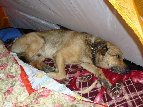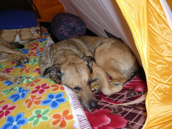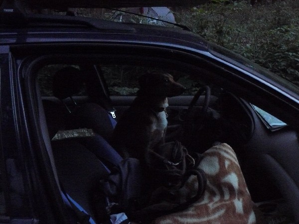 Po śniadaniu pakujemy się na wycieczkę. Pixel dogrzewa futerko.