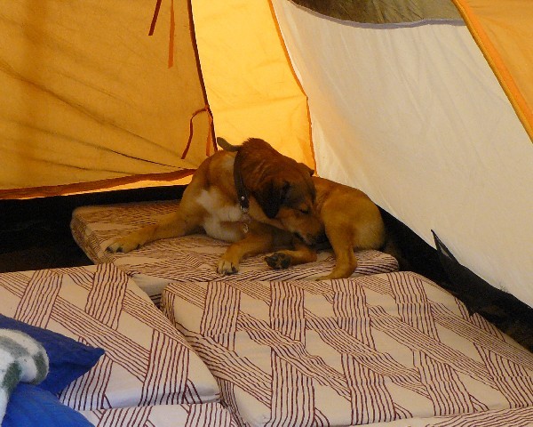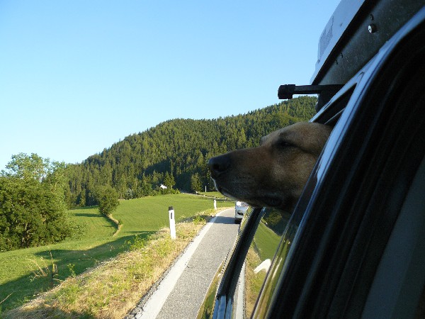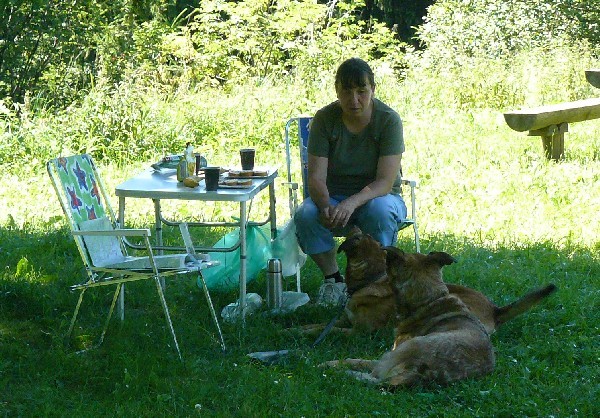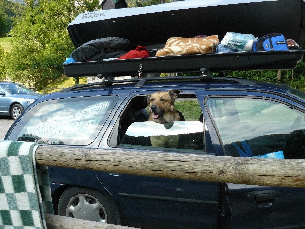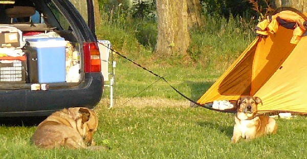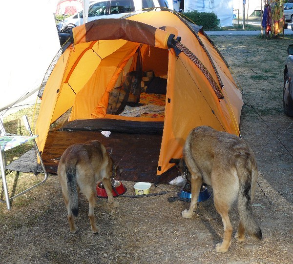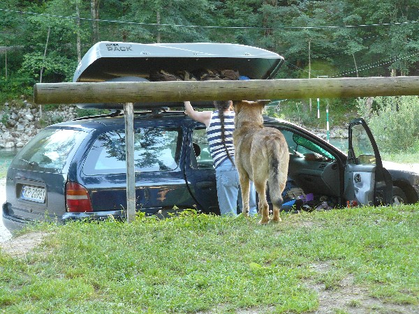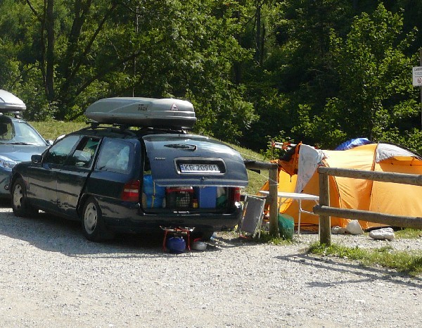 A to już pole namiotowe w Kaiserbrunn. Rozpakowujemy się, a psiaki czekają w aucie.