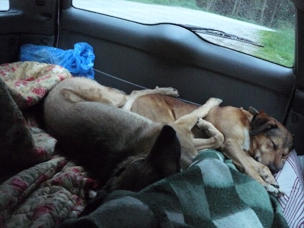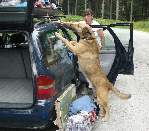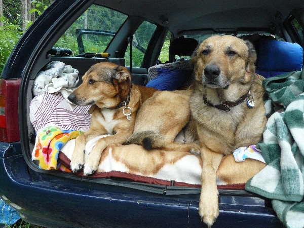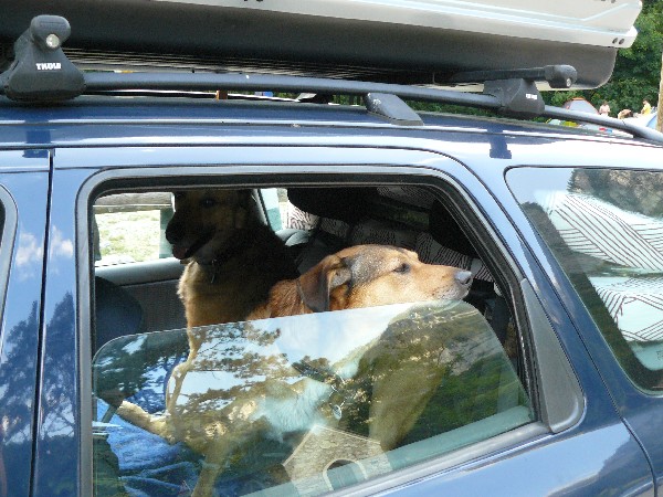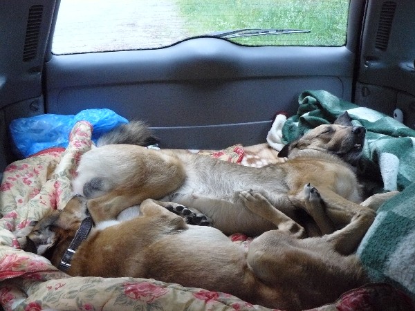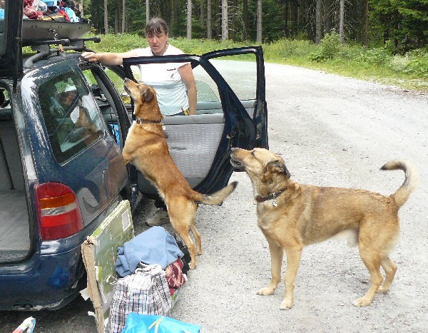 Pakujemy się na wycieczkę. Psiaki jeszcze nie wiedzą co je czeka.