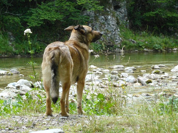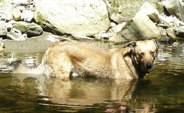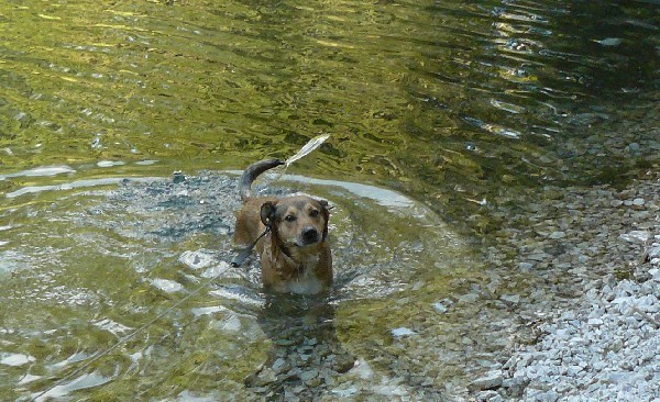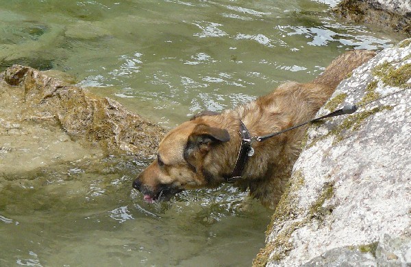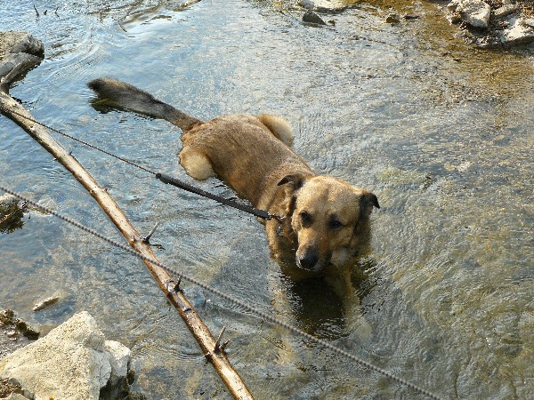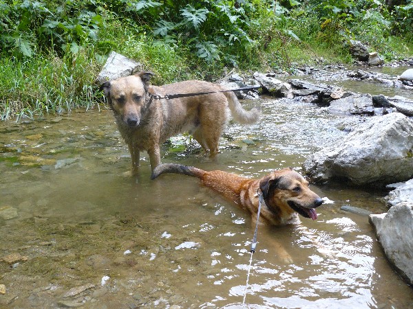 Idziemy dalej, psiaki wykorzystują dobry dostęp do wody.
